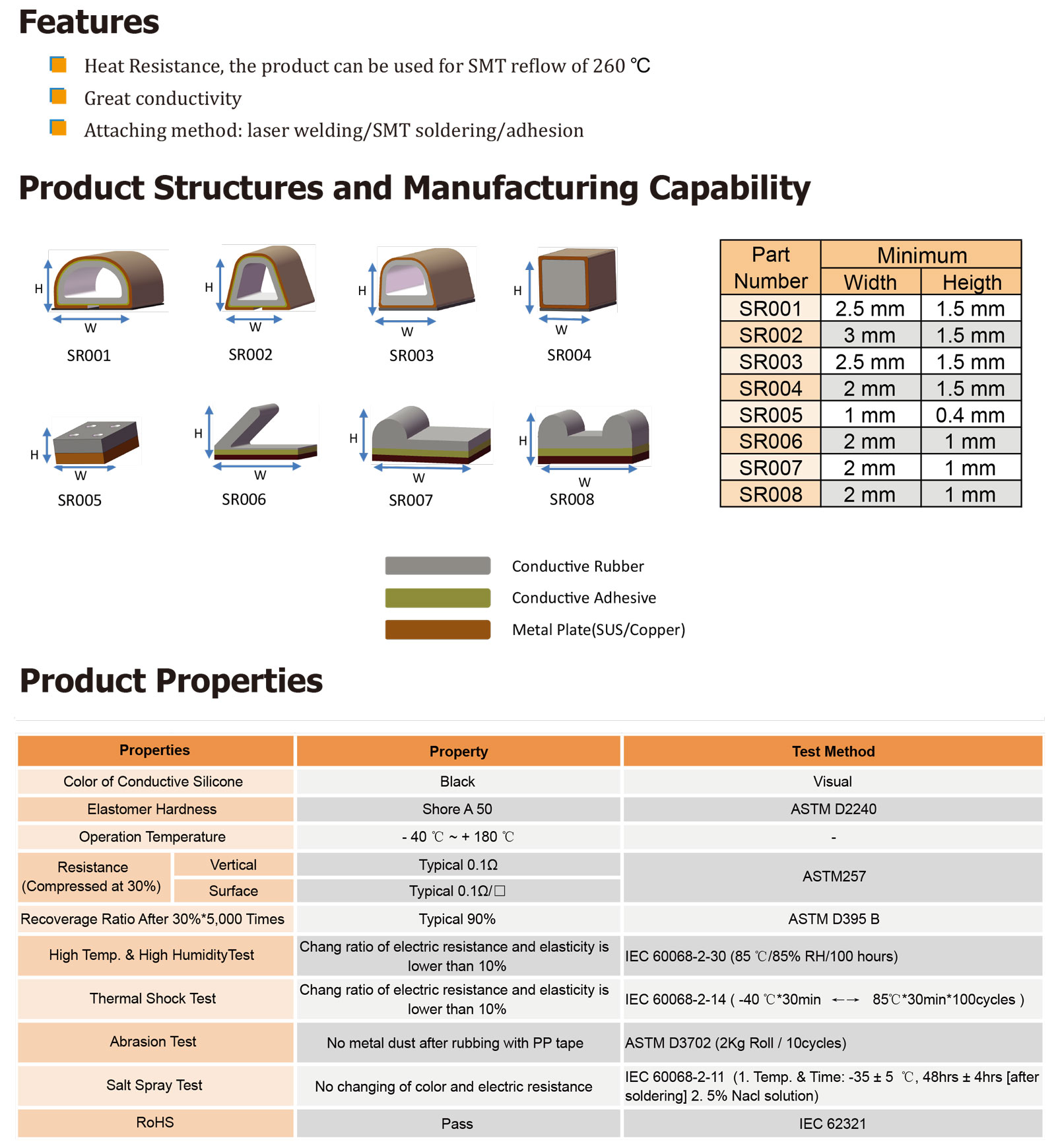 TM SR系列SMT橡膠墊片是一種矩形形狀、寬度較窄的產品,設計用于PCB和FPCB的接地墊或連接器,能夠有效屏蔽電子產品的EMI/RF噪音。是一種可回流焊接的彈性導電介質,可以通過SMT(表面貼裝技術)安裝在PCB和FPCB上。" />